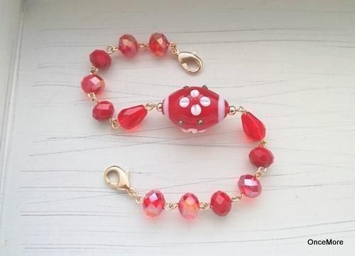 長さ変更が必要な場合はチェコビーズの数で調整できます。両端にひと粒ずつ追加し約20.5センチまで対応可能です。それ以上は若干デザインを変えて対応いたしますのでお気軽にお問い合わせください。