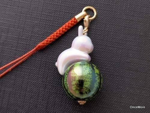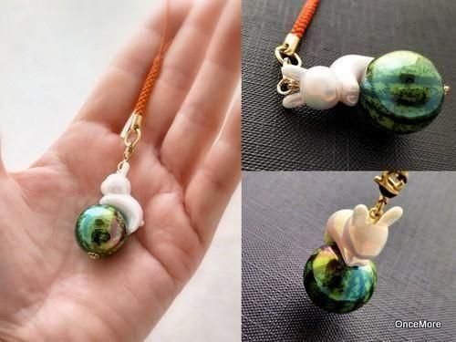 モチーフ側にカニカンを付けています。根付け紐・ストラップ紐・チェーンなどお好みで様々にお使いいただけます。