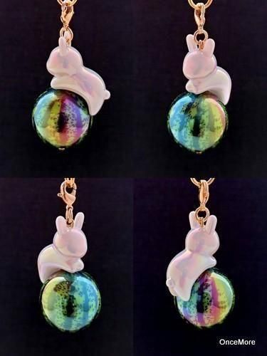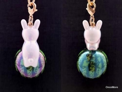 うさぎもスイカもアクリル製なので軽く、ともにオーロラ加工されている華やかなパーツです。
