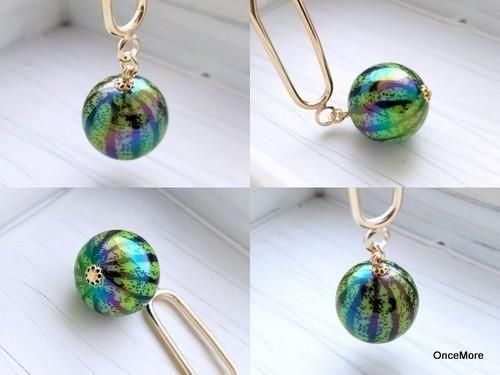 実にリアルなスイカの描写にオーロラのコーティングが映えて角度により面白い見え方をします。