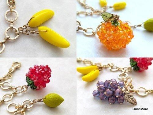 レモンもチェコビーズ。色合いを考慮して爽やかなグリーンレモンをチョイスしました。