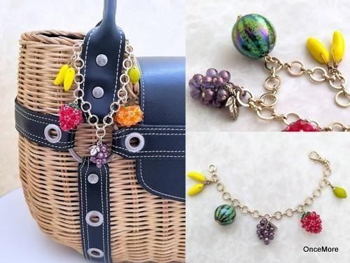 いちご、バナナ、葡萄、みかん、レモンの全5種類の果物を集めたバッグチャーム。