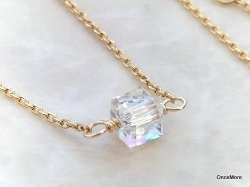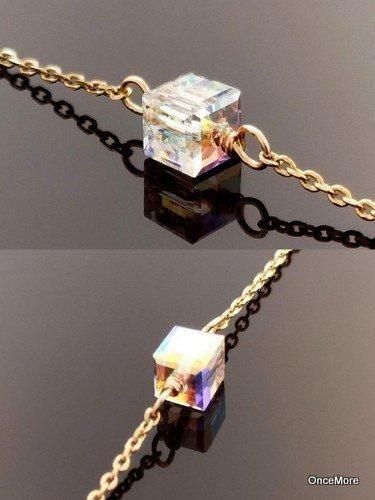 スワロフスキーキューブのひと粒ペンダント(クリスタルオーロラ)