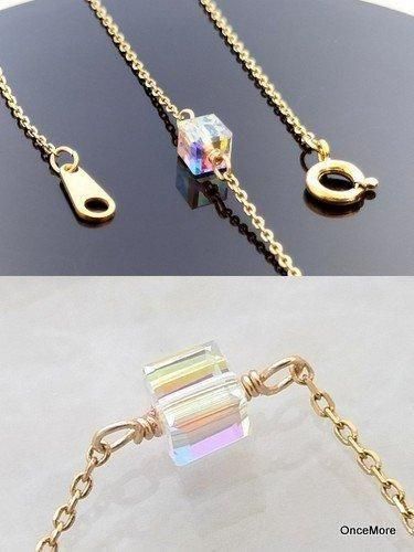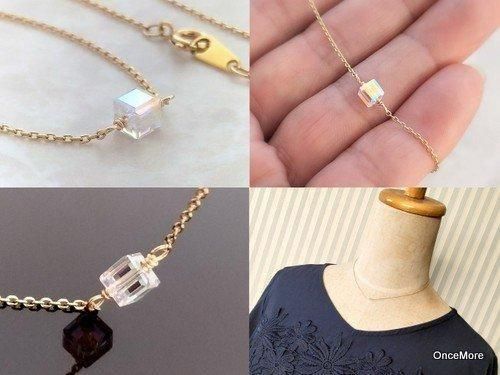 オーロラの輝きがまぶしいスワロフスキーのキューブをひと粒だけ使ったシンプル仕様。