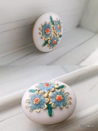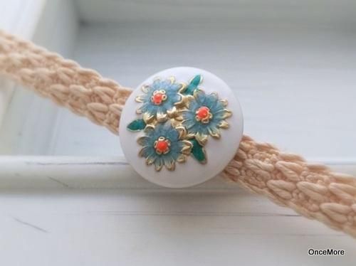 白地に3輪のブルーの花が揃ったインポートのアンティークボタンです。