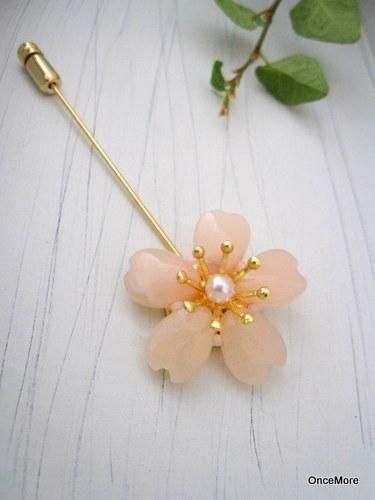 ほんのり色づいたピーチオレンジがやさしい花びら型のクォーツで桜の花を作りました。