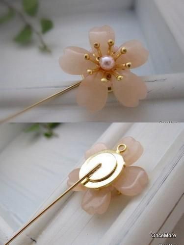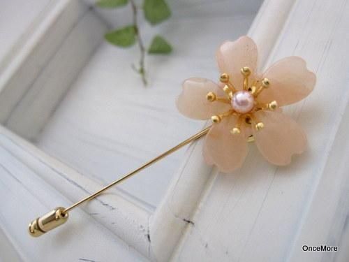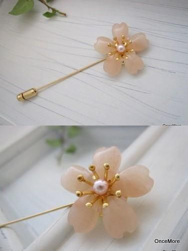 ほんのり色づいたピーチオレンジがやさしい花びら型のクォーツで桜の花を作りました。