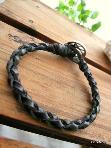 3ミリ幅のブラックの本革平コードを四つ組みで丁寧に編み込んだブレスレットです。