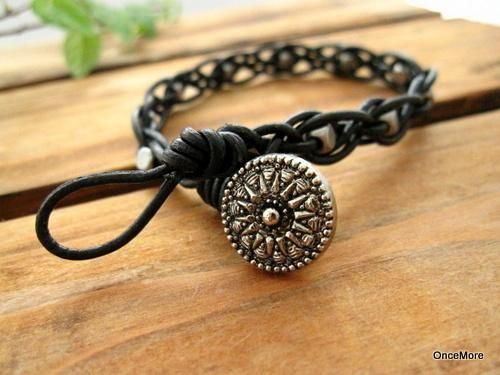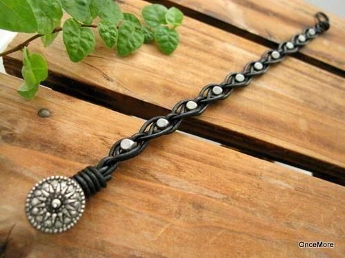 アンティークカラーのメタルビーズを通しながら変わり五つ編みで仕上げたブレスレットです。