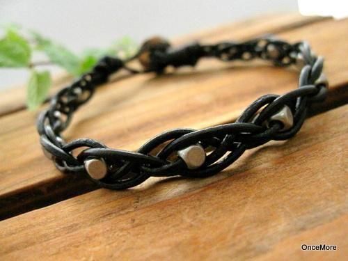 変わり五つ編みブレスレット(メンズ/ブラック)