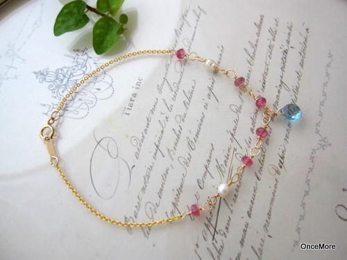 ライス型の淡水パールをアクセントにはさんだ華奢なブレスレット。