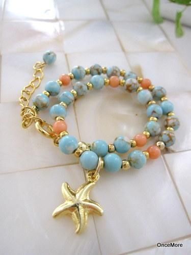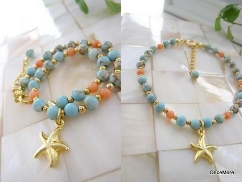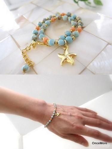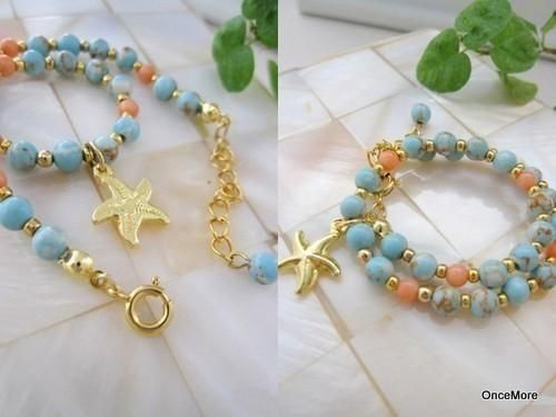 ゴールドの粒と珊瑚のオレンジをアクセントにはさみました。