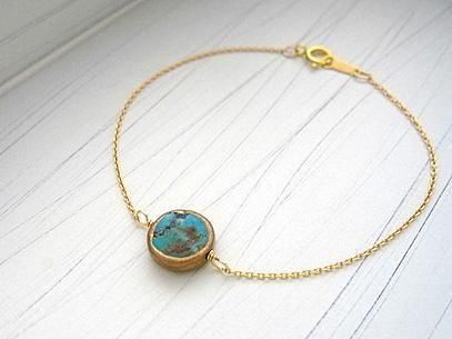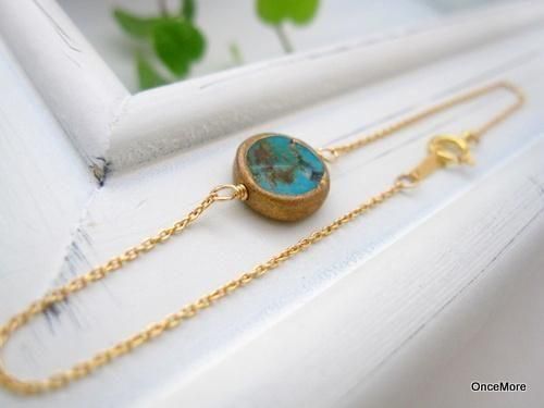 マッドゴールドの縁取りがクラシカルな太鼓型トルコ石。