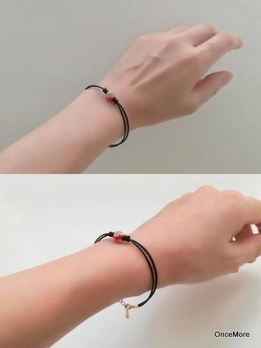 とんぼ玉ひと粒ブレスレット(赤系)