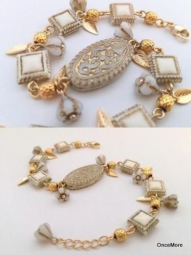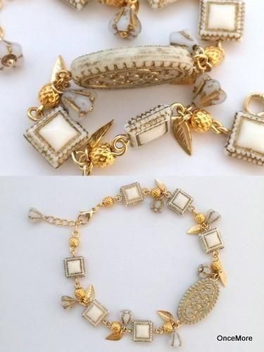 【現品限り】スクエアビーズとベルフラワーのレトロ調ブレスレット