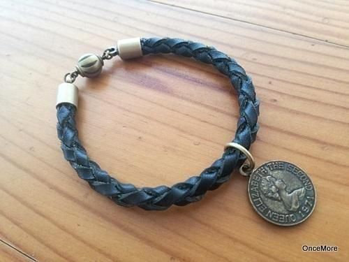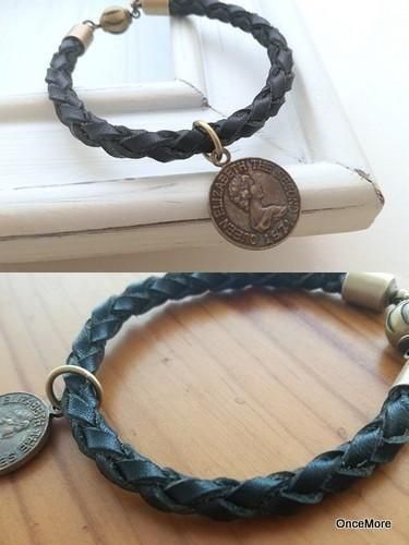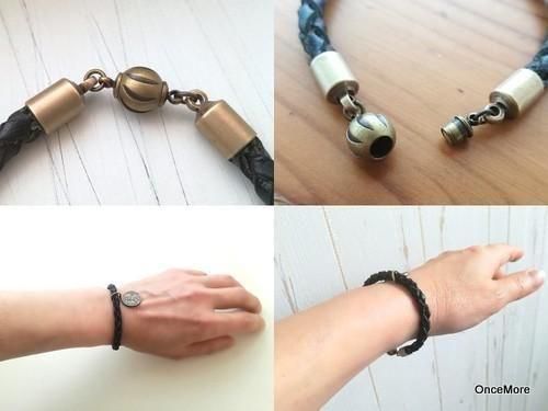本革四つ組みブレスレット(ブラック×クィーンエリザベス)