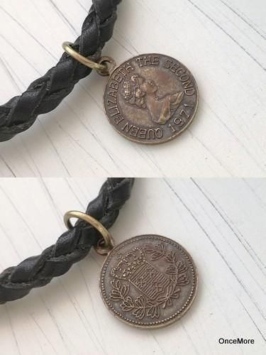 アンティーク加工されたクィーンエリザベスのチャームがアクセント。裏面も柄入りです。
