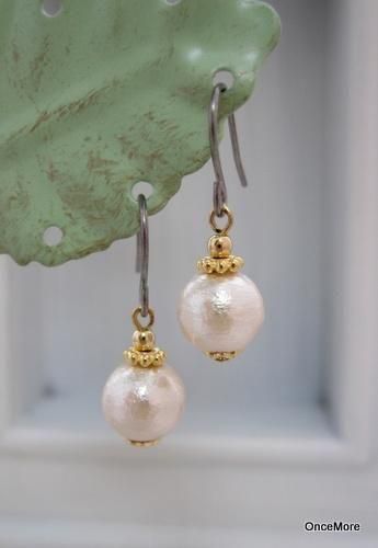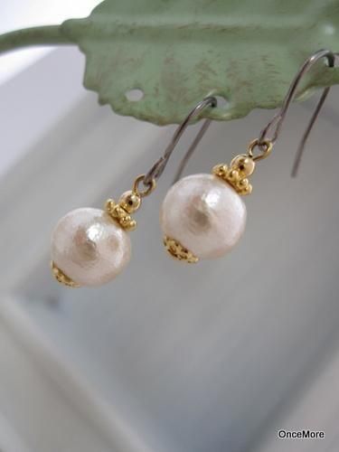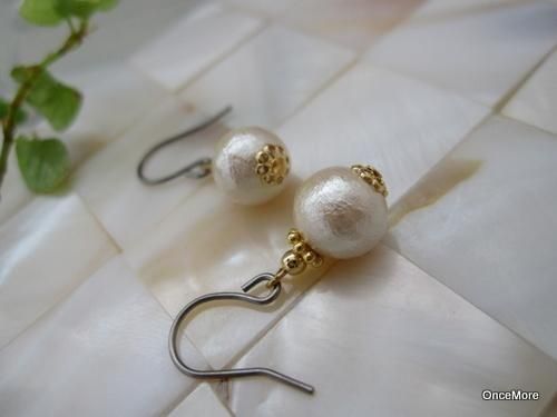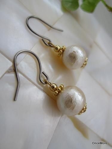 (オーダー品)コットンパールの一粒ピアス(アイボリー)