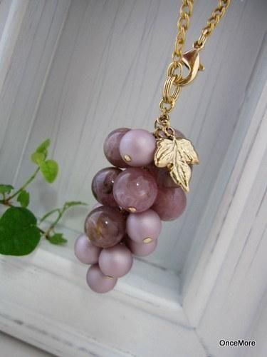 2種類のビーズで葡萄のフォルムを形成したバッグチャームです。