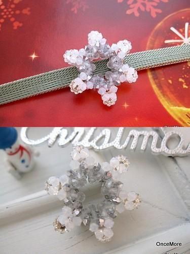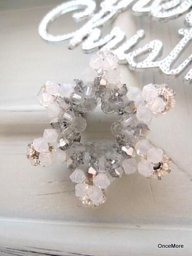 メタリックシルバー、乳白色、極薄グレーで雪の結晶を作りました。